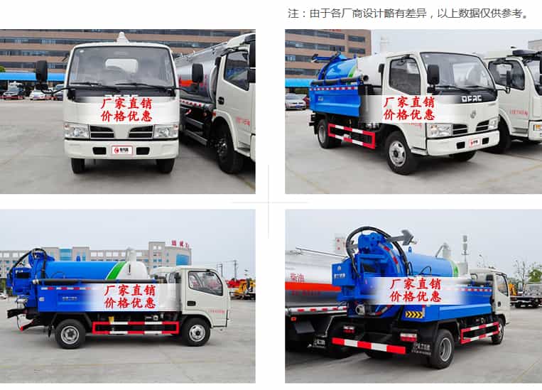 选装前面罩以及前雾灯。选装外观。车辆颜色可选,文字喷涂位置可变化。罐体外形尺寸为: 罐体外形尺寸(长壮ぶ嶙短轴)(mm):3500?850?350,3200?900?400。其中罐体后部1650mm为污水罐(罐体长度为3200mm时污水罐长度为1450mm)。清水罐前部1000mm为半截面结构,下部半截面为高压泵安装位置。污水罐:运输介质:液态污物,密度900千克/每立方米,载质量2600kg,罐体有效容积3.0立方米。清水罐:运输介质:水,密度1000千克/每立方米,载质量2600kg,罐体有效容积2.6立方米。侧防护采用冷弯型钢/Q235-A,螺栓连接(选装裙边结构)。后防护与车辆结构为一体,车辆后部离地高度480mm。ABS厂家及型号:襄阳东风隆诚机械有限责任公司/ABS/ASR-24V-4S/4M.。清洗和吸污功能不同时使用,两罐不能同时装载。车辆长/轴距/前悬/后悬的对应关系为:5980/3308/1040/1632,5660/2800/1040/1820.