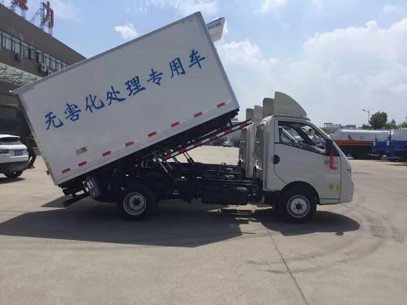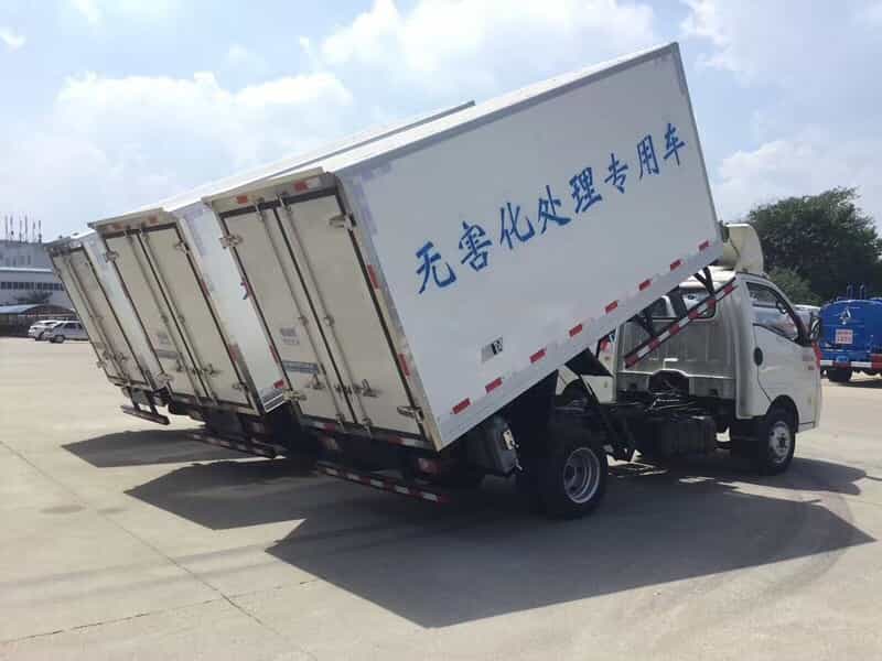湖北程力专业生产无害化处理收集车,动物无害化转运车是用于控制疫情传播感染的专用汽车,一般用来拉病猪死猪、病死牛羊、畜禽等,与一般普通的厢式货车不同 ,无害化处理运输车有消毒、冷藏、防止病毒传染的功能。