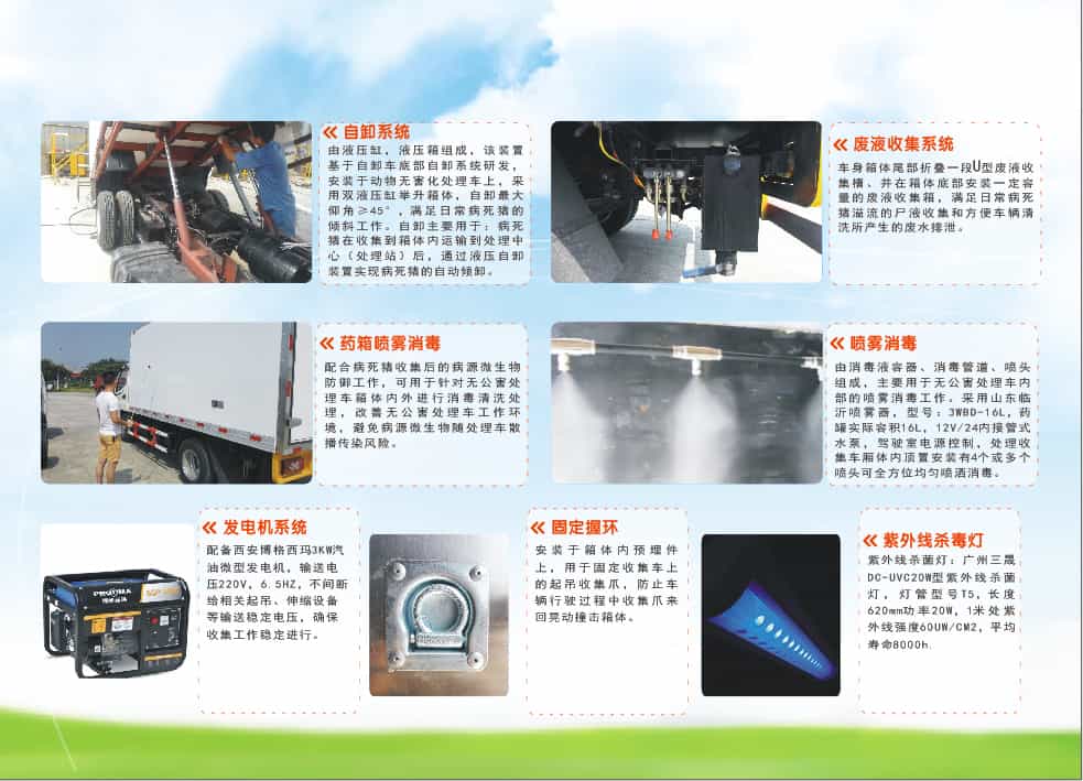 5.具有厢内残液收集系统,避免残夜外流,造成运输途径的病菌传播和污染。